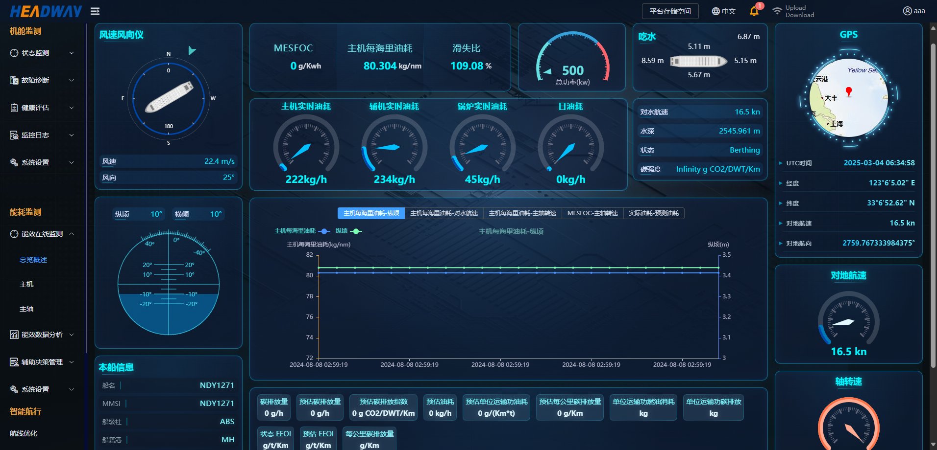Energy Efficiency Management System is an important part of the Headway Intelligent Shipping System, based on artificial intelligence technology. It can collect and analyze ship data, ocean climate data, ambient perception and historical data. The system can provides comprehensive monitoring of ship navigation conditions, energy efficiency distribution, energy conversion efficiency, etc. It also offers optimized suggestions for navigation, to empower ship operators to achieve meticulous management of ship energy efficiency.